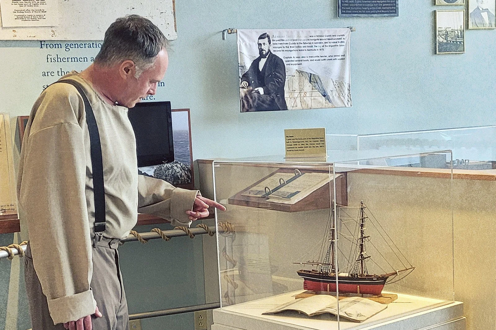 Sam Rowe, a fisherman and sailor. Born in Cupids in 1850, Sam is a fictional character who represents the generations of fishermen who made Cupids their home.